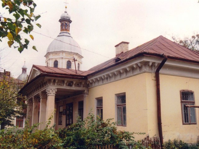Адміністрація заповідника розміщується в будівлі садибного типу в стилі пізнього класицизму (ампіру) початку XIX століття, що є пам’яткою архітектури місцевого значення. Центральна частина фасаду оформлена портиком з чотирма колонами коринфського ордеру і класичним фронтоном. В 1828-1829 роках, під час навчання в місцевій гімназії, саме в цьому будинку жив відомий український письменник і просвітитель Маркіян Шашкевич, тому його ще називають "Будинок Шашкевича".