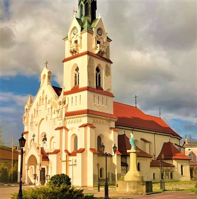 Римо-католицька парафія була заснована в місті королем Казимиром Великим ще в XIV сторіччі. Парафіяльний костел Різдва Богородиці був збудований у 1425 році. Кілька разів готичний храм знищували пожежі. В 1891 році була проведена остання велика реставрація, було встановлено орган.