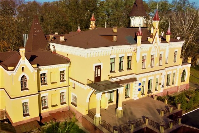 Депутат Державної думи, заможний землевласник Григорій Глібов мав славу людини ексцентричної. Свій романтичний палац він збудував у стилі неоготики, прикрасивши його дещо незграбною сторожовою вежею. До садиби вела липова алея, вздовж якої лежали великі валуни. Місцеві мешканці ще тоді прозвали палац Глібова "замком".