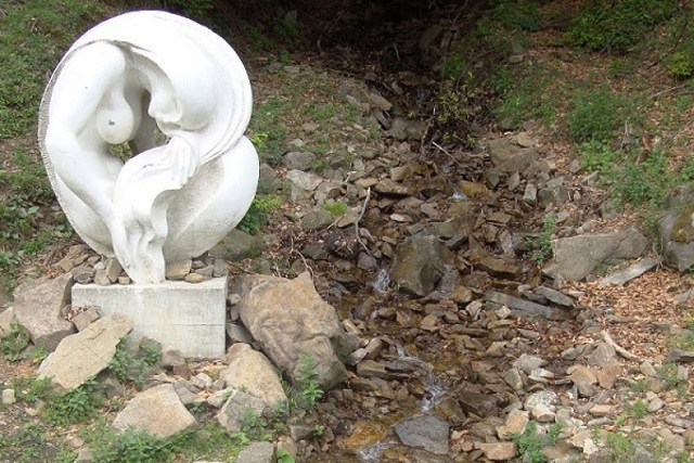 Джерело, яке знаходиться на виїзді з Колочави у бік Тячева, прикрашає скульптура русалки.
