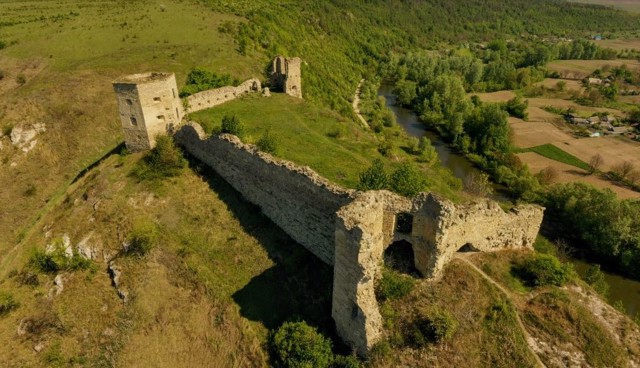 Руїни оборонного замку, що добре збереглися, височіють на горі Стрілка над Збручем.