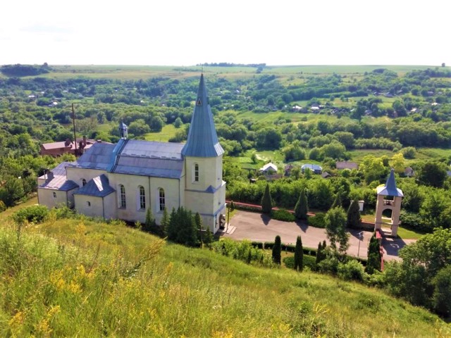 З вершини пагорба, де розміщена Свято-Михайлівська церква, відкривається краєвид на село та руїни Зіньківського замку.