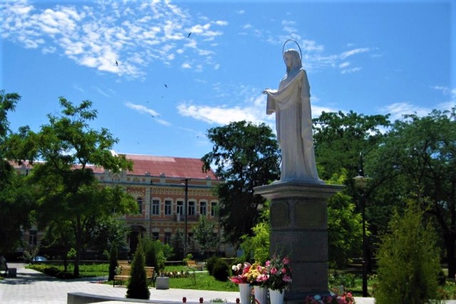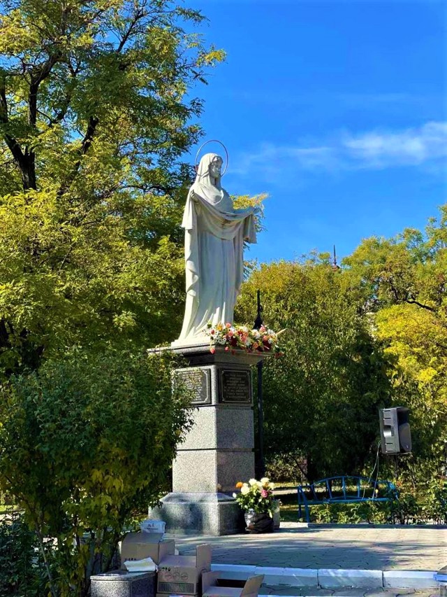 Скульптура Божої Матері відкрита у Покровському сквері в 2009 році. Вона розташована на місці храму Пресвятої Богородиці, зруйнованого в 1940-х роках.