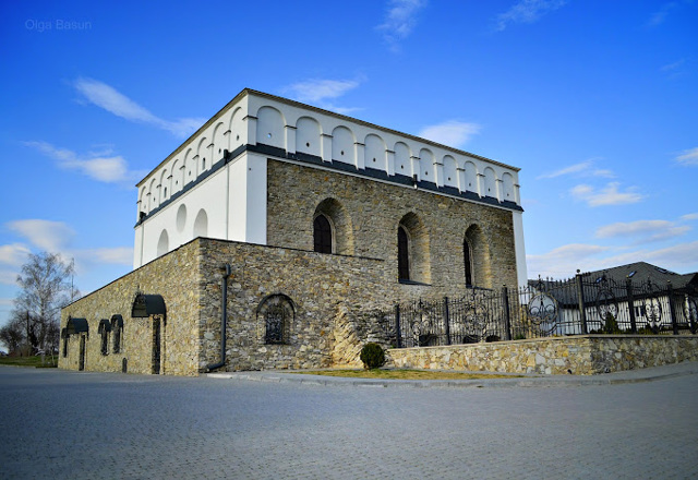 Будівля синагоги оборонного типу в стилі ренесансу була частиною оборонної системи міста. Складається в плані з прямокутного об'єму головної зали і знижених приміщень, що примикають до неї. Перекрито напівциркульними склепіннями зі стрілчастими розпалубками. Стіни укріплені контрфорсами. Стародавня єврейська синагога опоясана рядами мушкетних та гарматних бійниць.