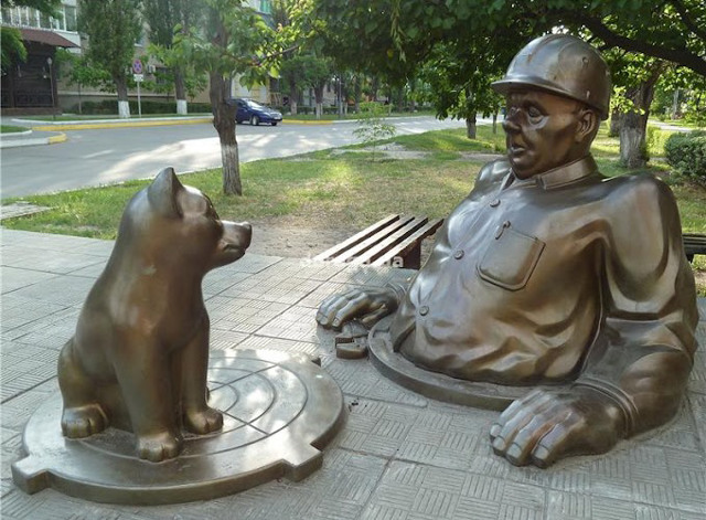 Скульптура сантехніка, що до пояса виглядає з каналізаційного люка, - одна з нових пам'яток Горішніх Плавнів.