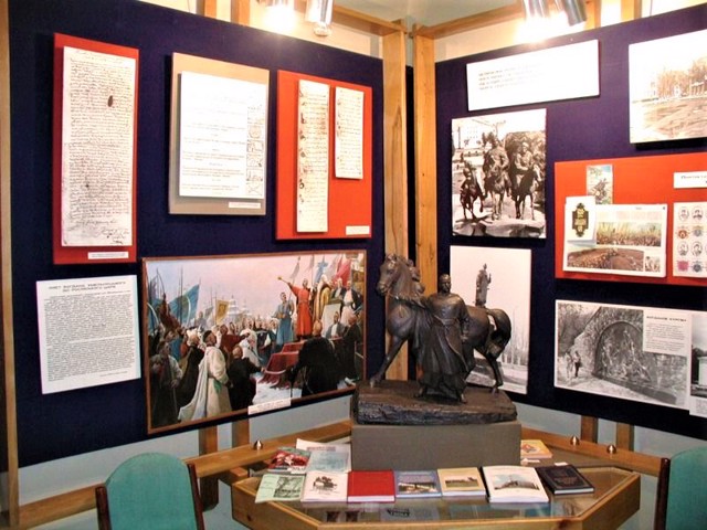 Експозиція розміщена у десяти залах на двох поверхах. Перша зала присвячена подіям Визвольної війни українського народу 1648-1654 років та перемозі Богдана Хмельницького на Жовтих Водах.