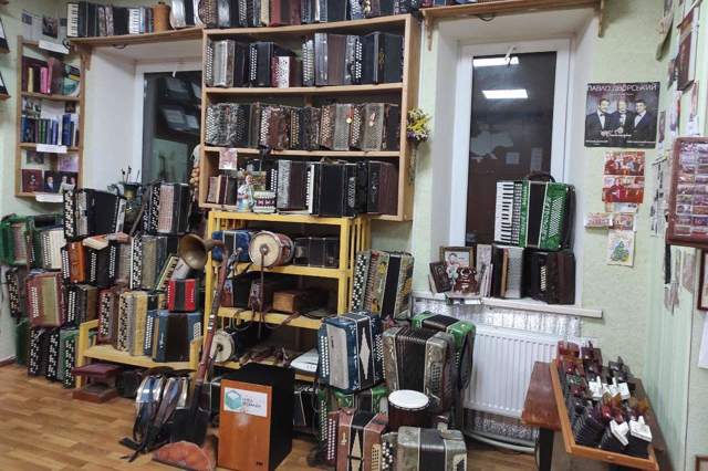 У музеї, крім гармонік, налічується близько 300 шумових та ударних інструментів.