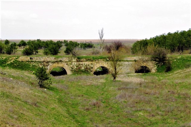 Арочний міст виконаний у стилі римських віадуків. Знаходиться прямо навпроти повороту на село Бургунка із траси Херсон-Берислав.