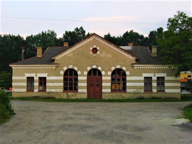 Складена з вапняку, однонефна. Західний фасад завершено високим щипцем, прикрашеним з боків декоративними вазами. Покрита скатним дахом, завершеним у центрі сигнатуркою. Нерозчленовані поверхні стін пожвавлені рідко розставленими напівциркульними віконними і дверними отворами.