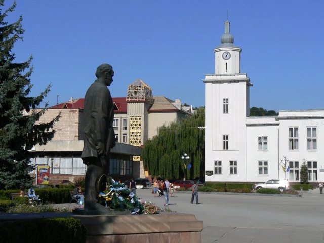 На площі перед ратушею встановлено пам'ятник Тарасові Шевченку.
