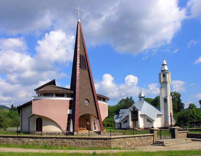 Костел Зіслання Святого Духа у закарпатському селі Довге – сучасна споруда в стилі конструктивізму з елементами хай-тек.