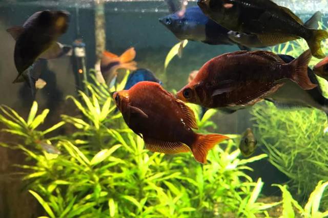 В акваріумі мешкають представники морської фауни Центральної та Південної Америки, Африки, Південно-Східної Азії, Індонезії та Дніпровського басейну. Особливо рідкісні види: соми-перевертні, боції-клоуни, скляні сомики, китайські аухи, пантодони, японські кольорові коропи Кої.