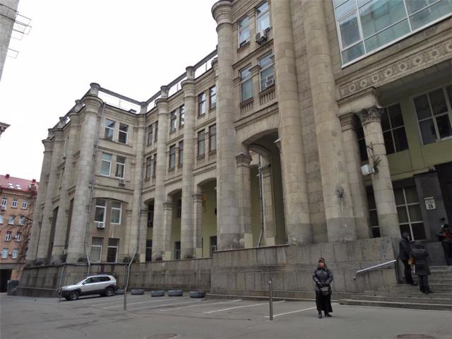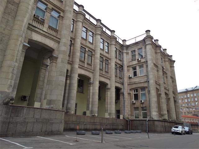 Чотириповерхова будівля в глибині кварталу збудована в 1913-1914 роках як приміщення телефонної станції на місці поштової контори. Після перенесення столиці України з Харкова до Києва в 1934 році тут розмістився радіокомітет.
