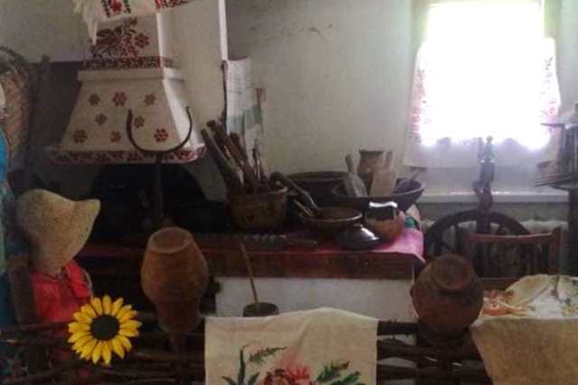В експозиції "Українська світлиця" можна побачити відтворений фрагмент української хати з піччю, побутовим речами давнини та манекенами в українському одязі. Кужелі, веретена, прядки і деталі верстаків, ярма і пута, граблі і вила, черепиці дають уяву про традиційний побут українського села.
