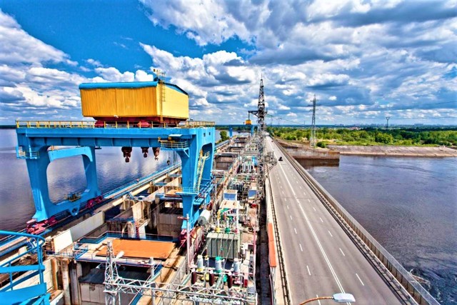 Будівництво Київської ГЕС продовжувалося з 1960 по 1968 рік. Споруди: будівля ГЕС (440 МВт), бетонна водозливна гребля з 20 водозливами, судноплавний шлюз, земляні дамби, споруди гідроакумулюючої станції з верхньою водоймою. Зведення греблі та міста енергетиків створило сучасний промисловий архітектурний вигляд стародавнього Вишгорода.