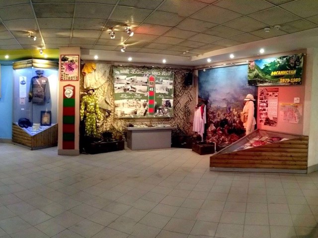Окрема зала музею відведена експонатам Афганської війни: картинам, зброї, формі військових та одягу місцевих мешканців.