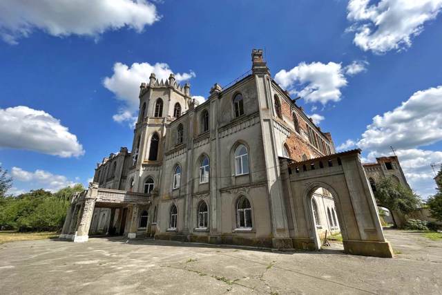 The Tereshchenko family palace in the village of Chervone near Berdychiv is one of the most interesting architectural monuments of the Zhytomyr region. A large, albeit badly dilapidated, three-story neo-Gothic house with two towers contrasts sharply with the surrounding agricultural landscape of the village.