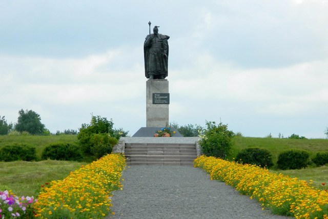 The chieftain is depicted with the hetman's mace in his hand. The authors of the monument are academician Vasyl Boroday and sculptor Rostyslav Synko.