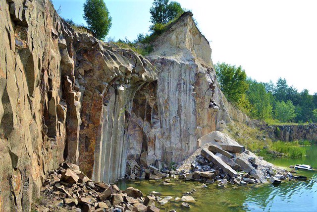 Large deposits of basalt were discovered near the village of Berestovets in the 18th century. Industrial extraction is carried out in an open manner. Some quarries are flooded, and in combination with the calm surface of the water, the basalt walls look especially beautiful.