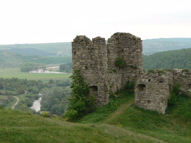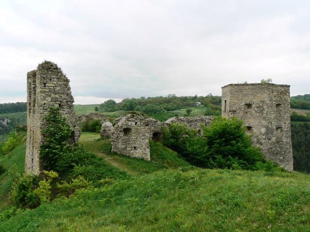 Руїни оборонного замку, що добре збереглися, височіють на горі Стрілка над Збручем.