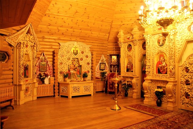 The temple is built from a cylindrical log in the form of an octagonal rotunda. The interior is decorated with a carved iconostasis in the Ukrainian Baroque style. There is a parish school at the Holy Great Martyr Demetrius of Thessaloniki Church.