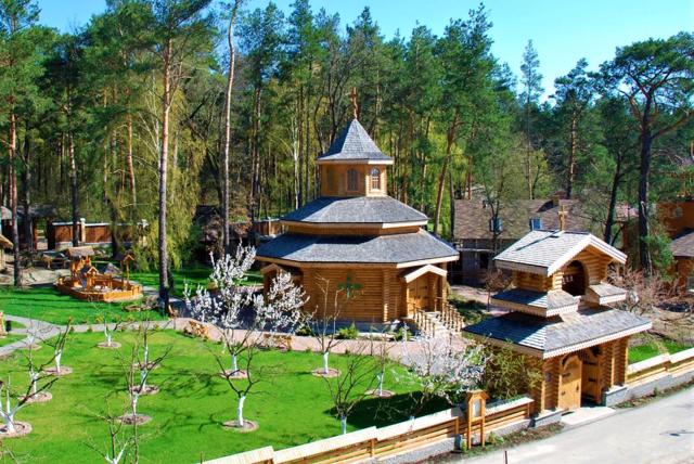 The wooden temple of the holy Great Martyr Demetrius of Thessalonica is the central building of the ethnographic complex "Ukrainian Village".