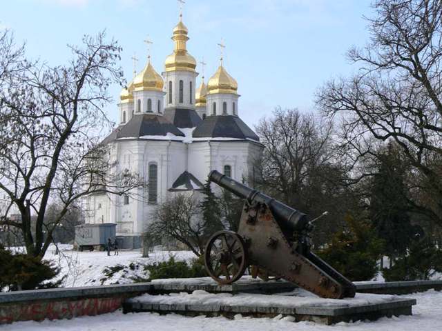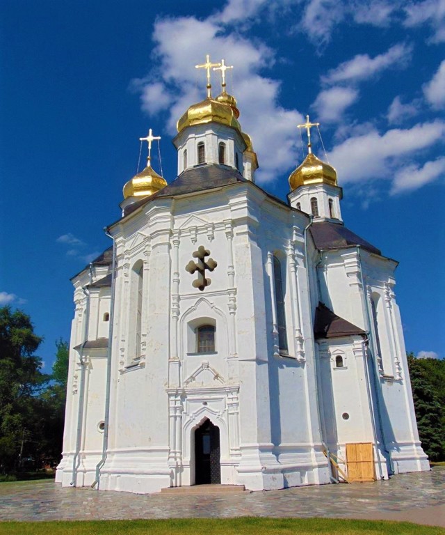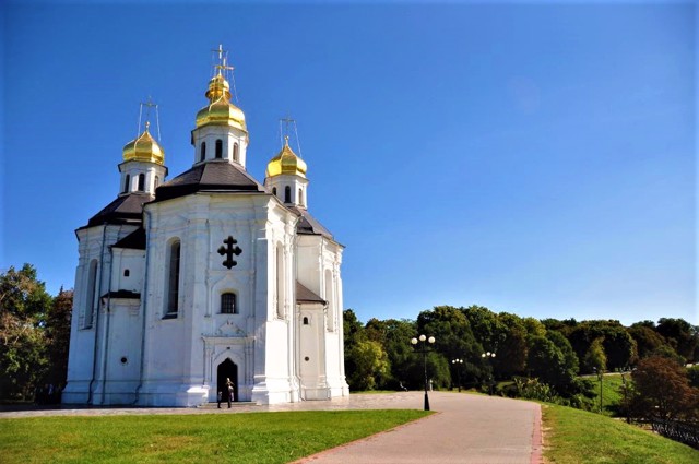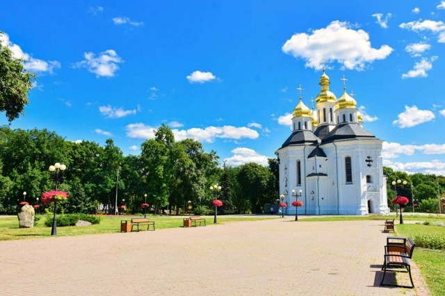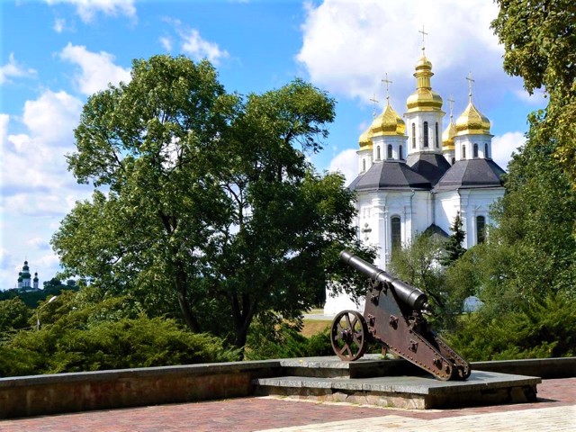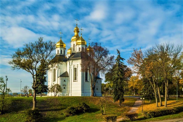 The Cathedral of the Holy Great Martyr Catherine solemnly greets everyone who enters Chernihiv from the Kyiv side, it is considered a symbol of the city. It is located on the opposite hill from Dytynets, on the Alley of Heroes.