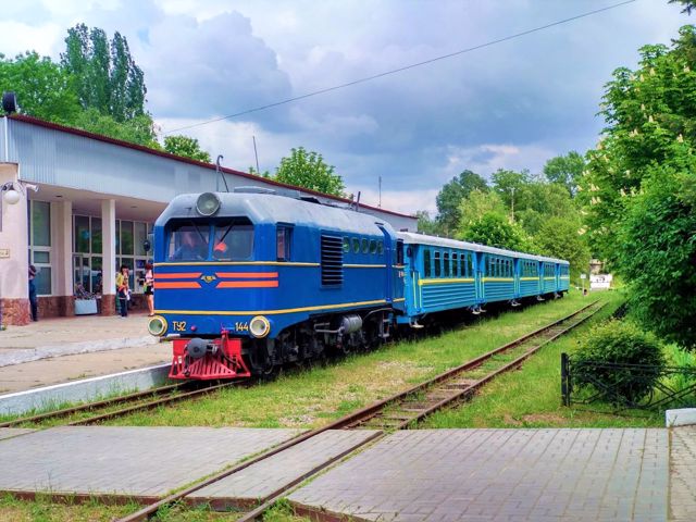 It was built in 1972 on Saturdays by Komsomol members and youth of the city of Zaporizhzhia. At the time of its opening, its length was 3.5 kilometers, and there were 3 stations on the road. Currently, the full operational length is 9.4 kilometers, there is a tunnel 80 meters long. Rolling stock: diesel locomotives TU7A-3108, TU2-136, TU2-144, PV51 wagons, cargo platform.