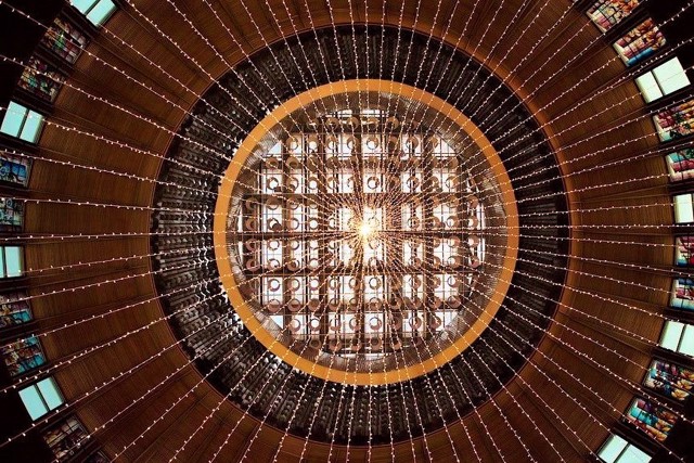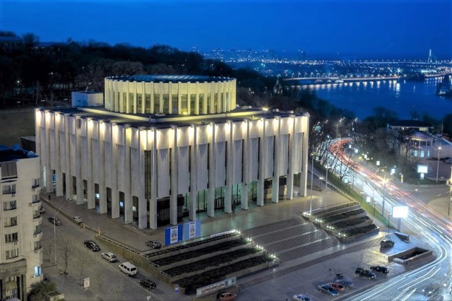 Конструктивістська будівля Національного центру "Український дім" з'явилася біля підніжжя Володимирської гірки в центрі Києва в 1982 році.