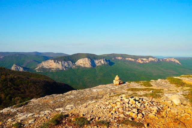 The rocks rise near the edge of the Ai-Petri Yayla and resemble the outstretched wings of a giant bird.