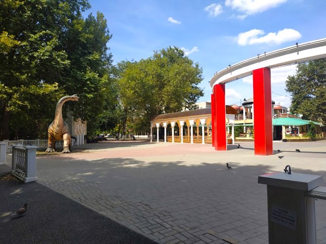 On the territory there is an old pumping station with "Krymska" mineral water. In the 1960s, a sculptural group of dinosaurs was installed over the pond next to the pump station.