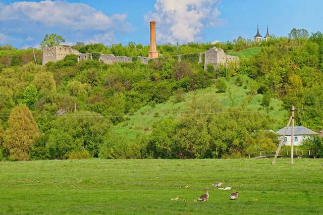 The Sataniv Castle is located in the northern part of the village of Sataniv on the high bank of the Zbruch River.