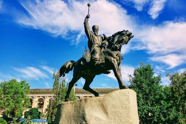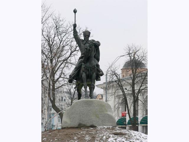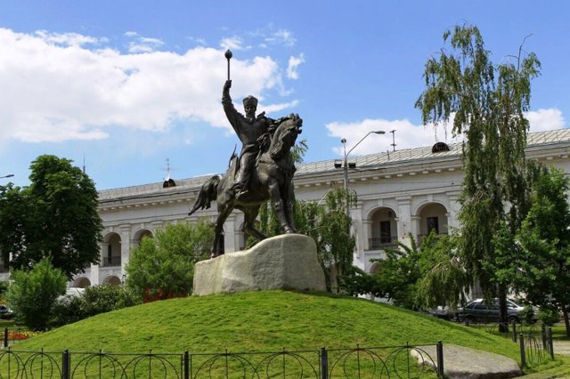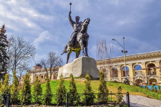 The equestrian monument to Hetman Petro Sahaydachny was installed in the square at the intersection of Sahaydachnoho Street and Kontraktova Square, near the Kyiv-Mohyla Academy.