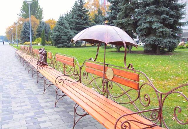 Before being installed on the embankment of the pond on the Utka River in the city of Slavuta in 2012, the bench held the title of the longest in Ukraine.