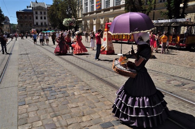There are always many tourists on Rynok Square in Lviv, especially on the days of numerous holidays and festivals.