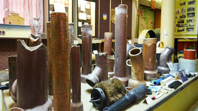 Numerous exhibits of sewage management are presented: modern and ancient pipes, in particular wooden ones, which are about 200 years old, samples of collectors, valves and pumps, hatches of different periods, models of pumping stations and special equipment, as well as various tools and means for cleaning networks.