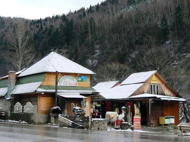 The basis of the assortment consists of wooden products: carved vases and boxes, souvenir axes (bartka), mugs and saucers, all kinds of sculptures. Hutsul blankets made of felted wool (beds), warm woolen socks and fur slippers are very popular. Embroidered and woven shirts, towels, carpets and bedspreads are presented. Dried mushrooms, honey, nuts and Carpathian herbal tea are sold here.