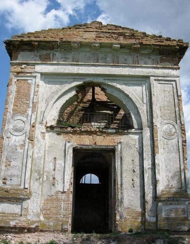 The temple in the style of classicism is built in the form of a rotunda, which is rare for Orthodoxy. On the western side, there is a two-story vestibule with a balcony and a triangular pediment, on the frieze under which there is a row of Maltese-type crosses, which may indicate that the former owners of the estate belonged to a Masonic lodge.