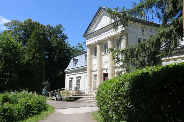 In Pustomyty, they call the "House with lions" a palace in the style of classicism, located in a park - a monument of garden and park art of the 19th century.