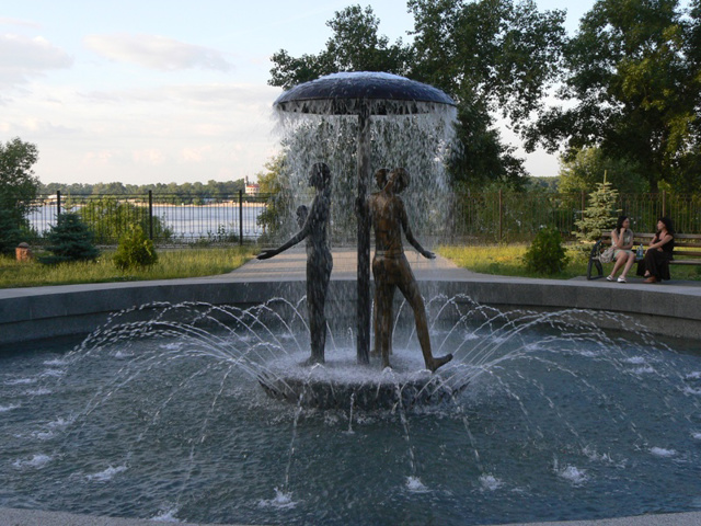 A small recreation area on the Dnipro embankment near the new high-rise buildings near the Pivnichny Bridge on Obolon is called the "Garden of Stones" in Kyiv.