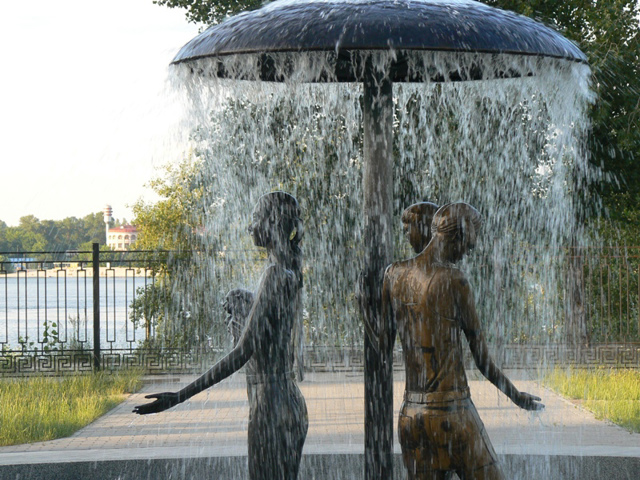 The main decoration of the Stones Garden was a large fountain with a diameter of 11 meters, made of granite. In the center of the fountain there are three female bronze figures under an umbrella. A bronze mermaid sitting on a stone and holding a seashell in her hands attracts special attention. it is believed that love will surely come to those who touch her breasts.