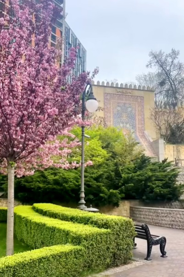 The centerpiece of the park composition was a copy of the "Sheikh Safi" carpet, the national symbol of Azerbaijan, made of Murano glass and ceramics. A cascade of fountains descends from it. The park wall symbolizes the Icheri-sheher fortress - the oldest landmark of Baku.
