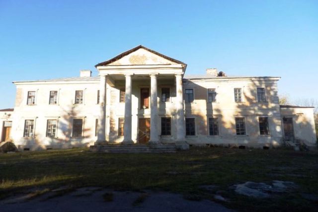 A two-story palace in the style of classicism with a four-column portico stands on the high bank of the Pivdenyi Buh. The last owner was Lyubov Abamelek.