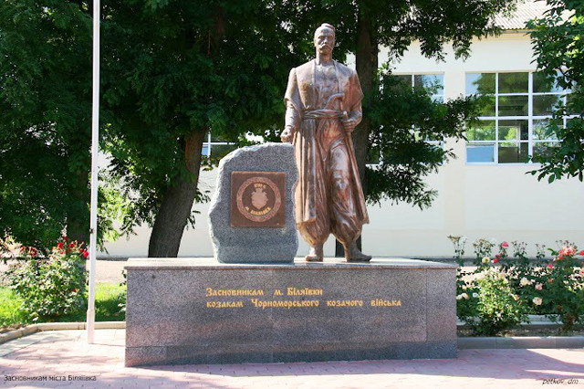 A monument to the Black Sea Cossacks, who founded the city in 1789, was erected in the center of Biliaivka in 2008 to mark the 219th anniversary of the city.