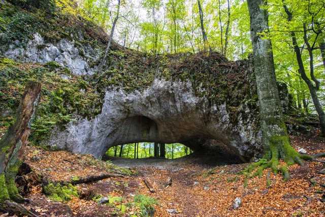 The "Karst bridge" rock is a rare monument of nature, one of the most impressive natural sights of the Carpathians. It is located in the "Chur" tract on the territory of the Uholsko-Shyrokoluzhansky protected massif, north of the village of Mala Uholka.