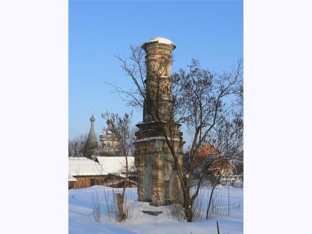 It is an obelisk pillar, square in plan, gradually narrowing upwards, with a three-slope end. It is located southwest of the Medzhibizh castle, on the opposite bank of the Pivdenniy Buh, near the bridge. At first it stood over the grave of a Turkish military commander, later it served as a chapel.