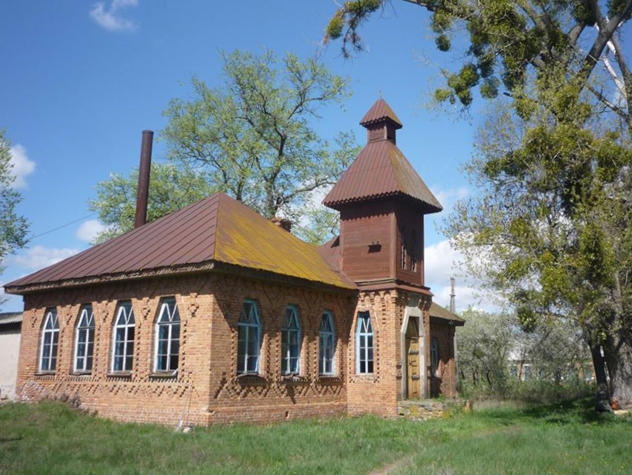 The Ukrainian painter, ethnographer and architect Slastion developed a number of original school projects for the Lokhvytskyi zemstvo, to which the village of Pisky-Udaiski belonged at the time. These projects are characterized by pointed towers and trapezoidal window openings.