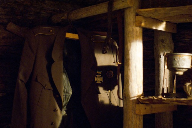 The planning and interior equipment of the insurgents' bunker is based on drawings made by NKVD officers: bunk beds, boxes, shelves, shelves, tables and benches, a stove. On the walls are black and white photographs, postcards and posters of the time.