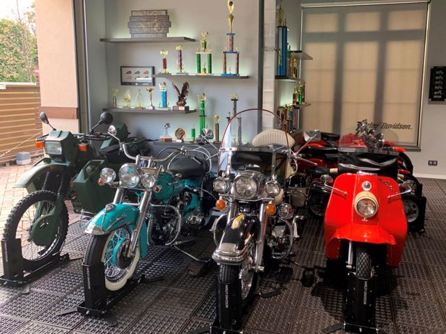 The collection includes more than 20 models of motorcycles: rally, military and civilian. In particular, one of the first Harley-Davidson X8A Single models of 1912, the most popular military motorcycle Harley-Davidson WLA 45 of 1942, the only Harley-Davidson Topper H scooter in the history of 1964, one of the first comfortable travel models Harley-Davidson FLHT Electra Glide Standard 1968, etc. Some exhibits are almost the only ones in the world.