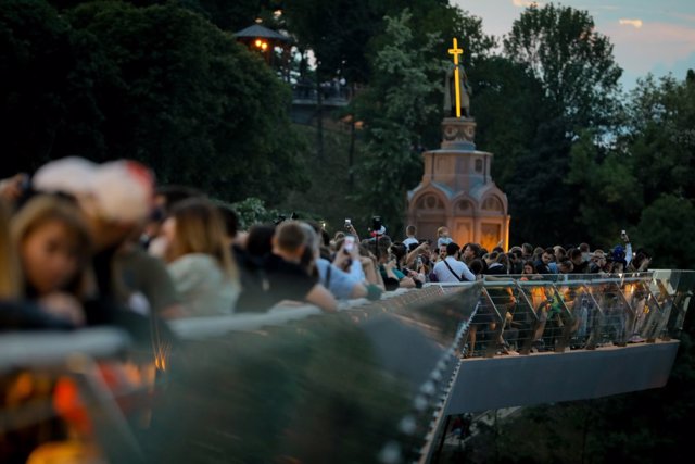 It was opened for Kyiv City Day in 2019, and since then it has immediately become one of the most popular tourist attractions in the capital. The reinforced concrete bridge on four piers has a length of 212 meters (in some sources – 216), the height of the highest pier is 32 meters. The bridge has a winding canvas, on each of the two main bends there are viewing platforms with glass windows in the floor and observation binoculars.